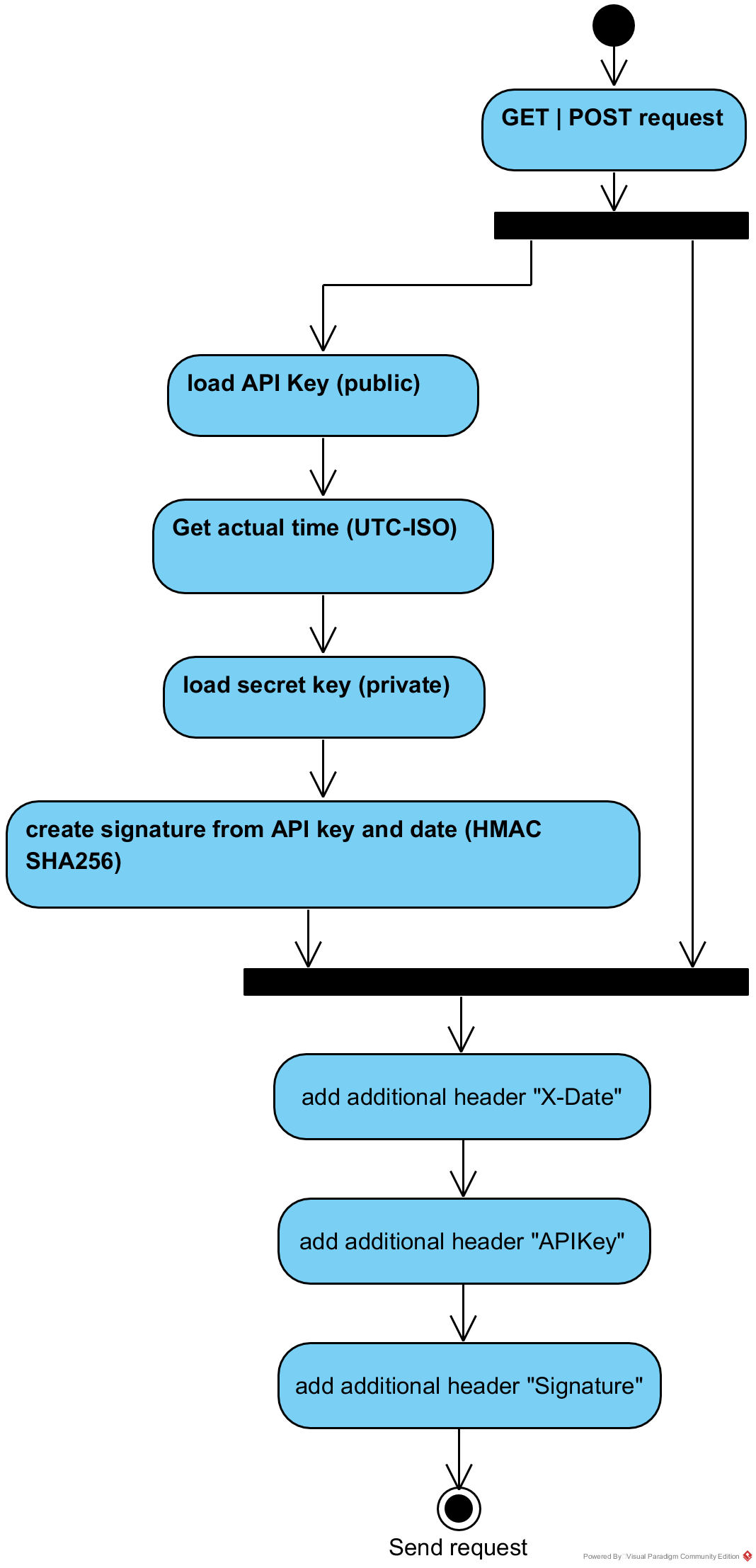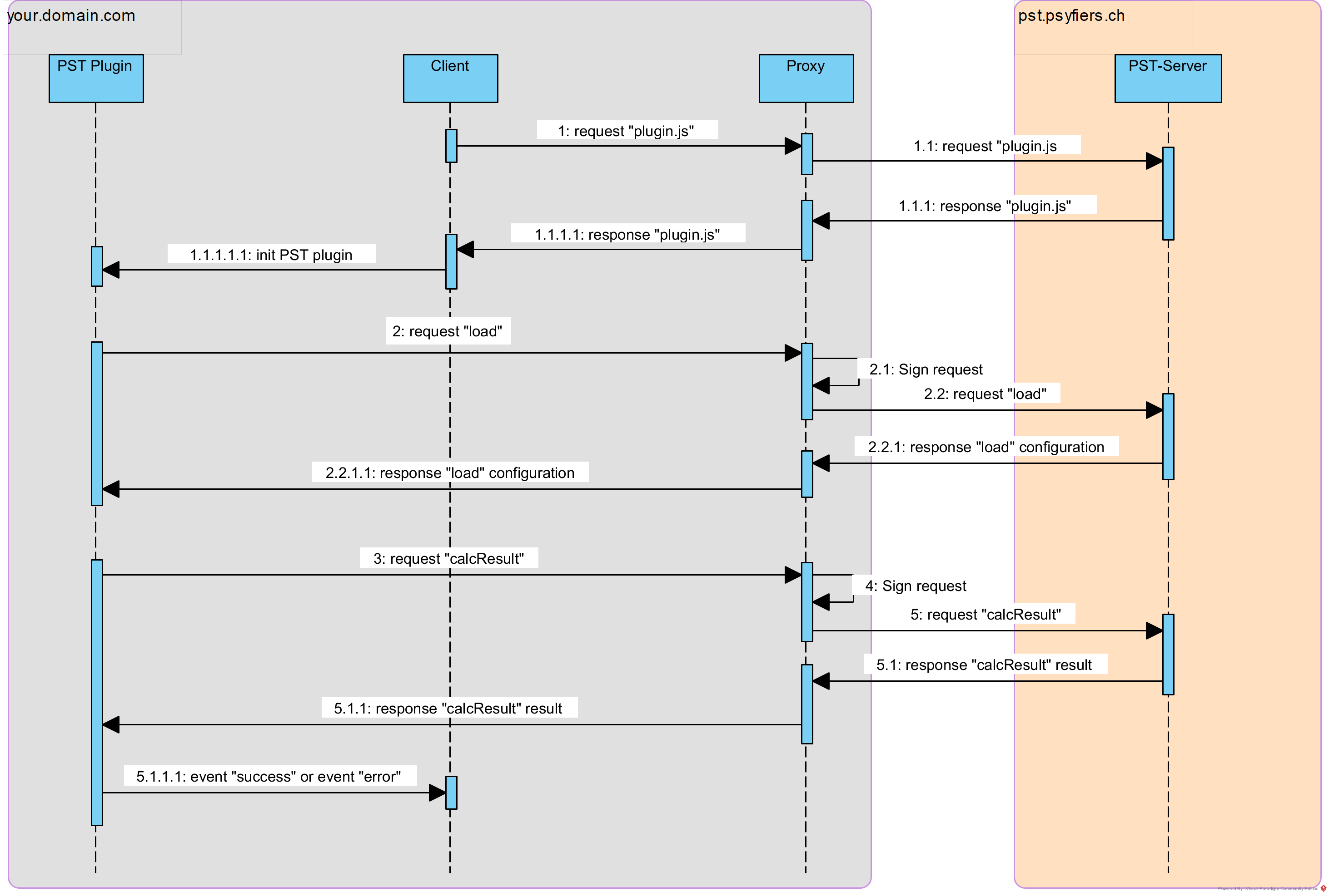 The PST proxy also signs the requests made via the private part of the API key. This ensures that no unauthorized third party can use the PST server.